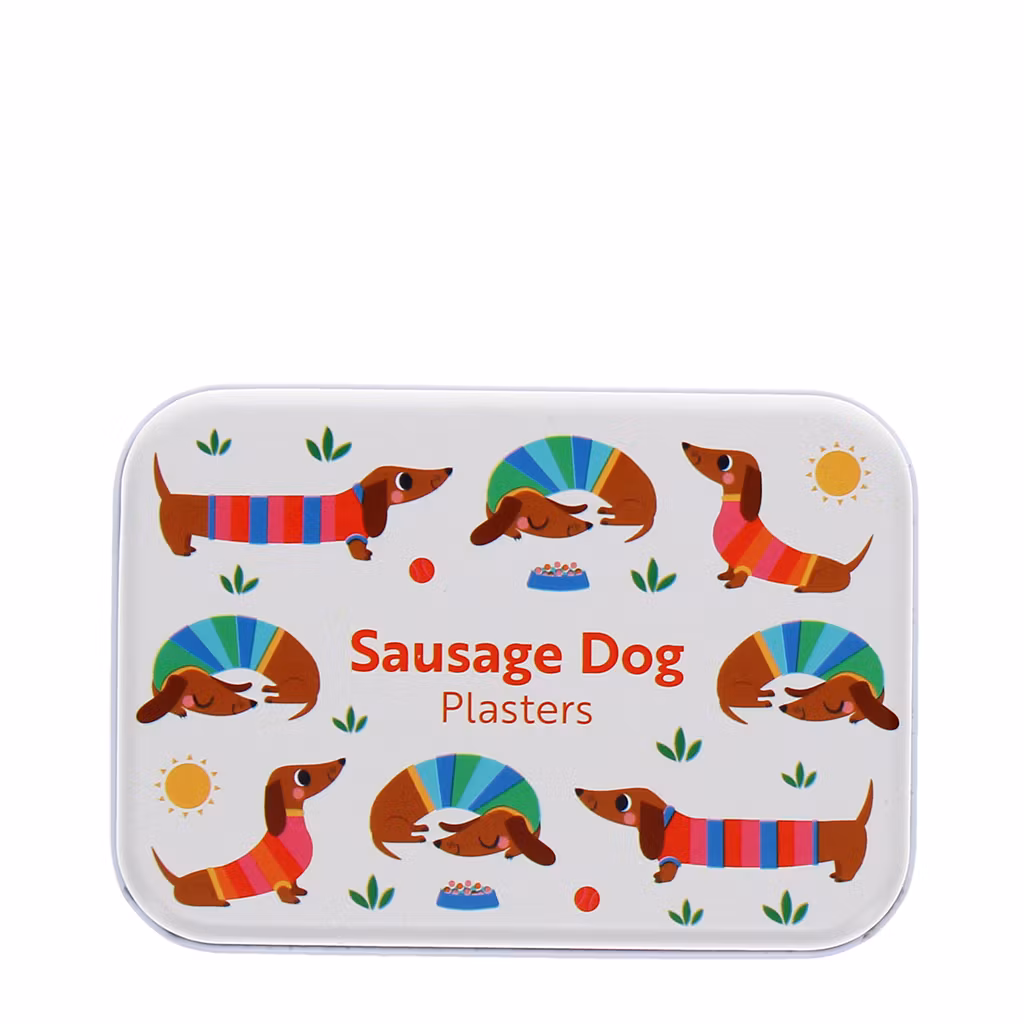 Ett set med 30 färgglada plåster, alla med ett sött motiv av taxar som njuter i solskenet – den perfekta lösningen för små barns mindre sår och skrubbsår. Plåstren är latexfria och förvaras snyggt i en matchande metallask, vilket gör dem enkla att hålla ordning på och alltid redo i medicinskåpet eller i väskan när du är på språng. Asken innehåller tre olika storlekar för att passa olika behov: 10 plåster som mäter 38 × 38 mm, 10 plåster som mäter 72 × 19 mm och 10 plåster som mäter 56 × 19 mm. En praktisk och lekfull produkt som gör plåster lite roligare för barn.