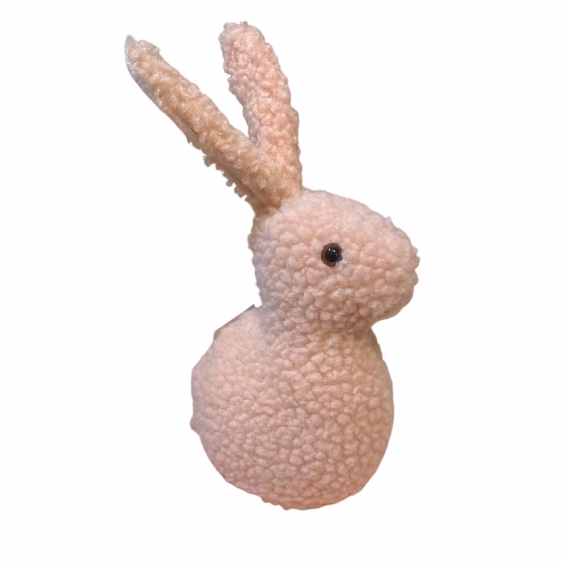 Charmig påskhare i mjuk och fluffig textil. Med sitt vänliga utseende och fina detaljer blir den en omedelbar favorit för både barn och vuxna. Perfekt att place