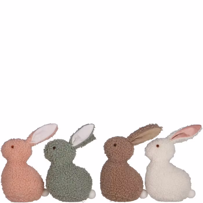 Charmig påskhare i mjuk och fluffig textil. Med sitt vänliga utseende och fina detaljer blir den en omedelbar favorit för både barn och vuxna. Perfekt att place