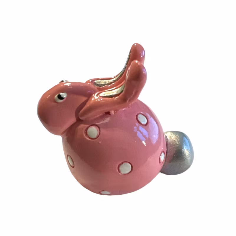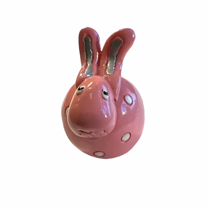 Rundlagd påskhare i rosa, vitt och silver. EGEN DESIGN