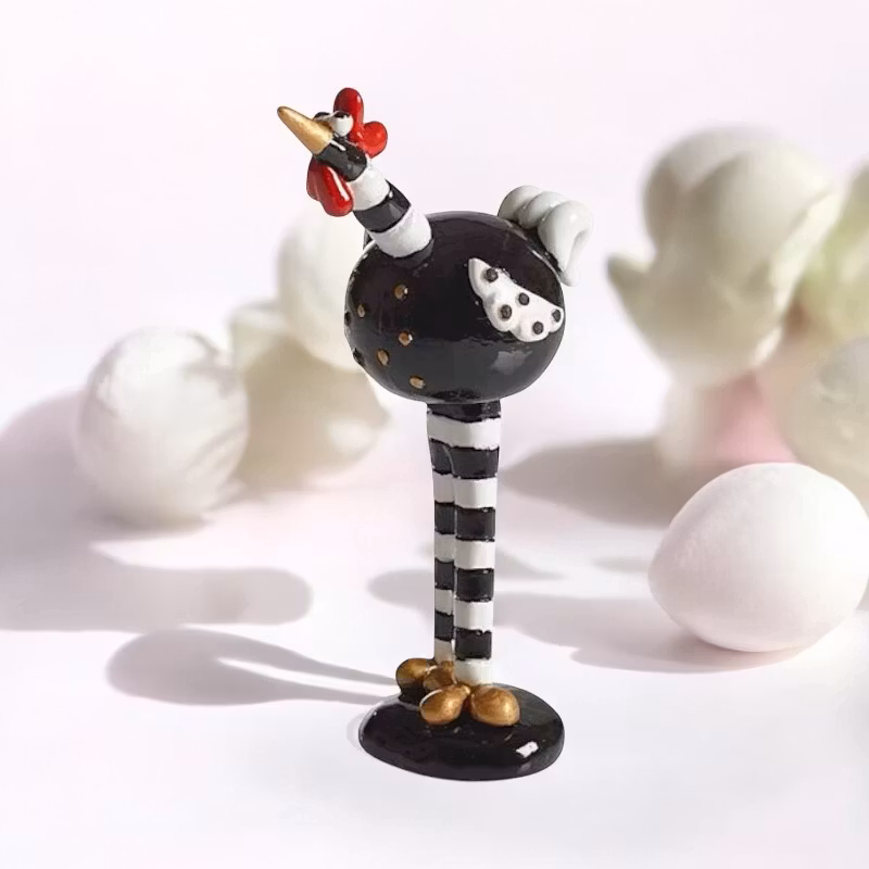 Möt Gyllenkrok, vår charmiga höna med långa randiga ben. Denna unika höna, designad av mig för Nääsgränsgården, är perfekt för att förgylla ditt hem m