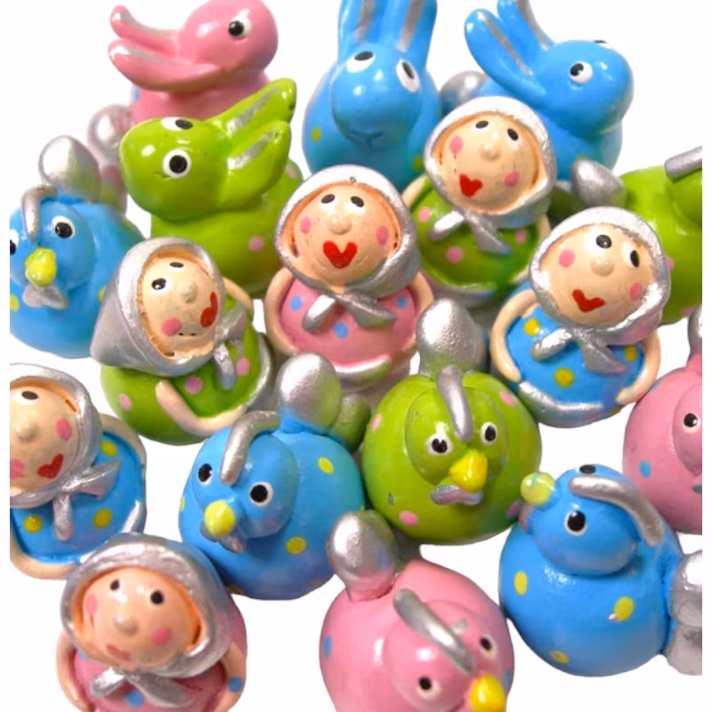 Små, små minifigurer i tre olika färger!EGEN DESIGNStl ca: 1,5 x 1,5 cmSäljes i 3-pack (en höna, en påskkärring och en påskhare)Pris: 45:- /förp.