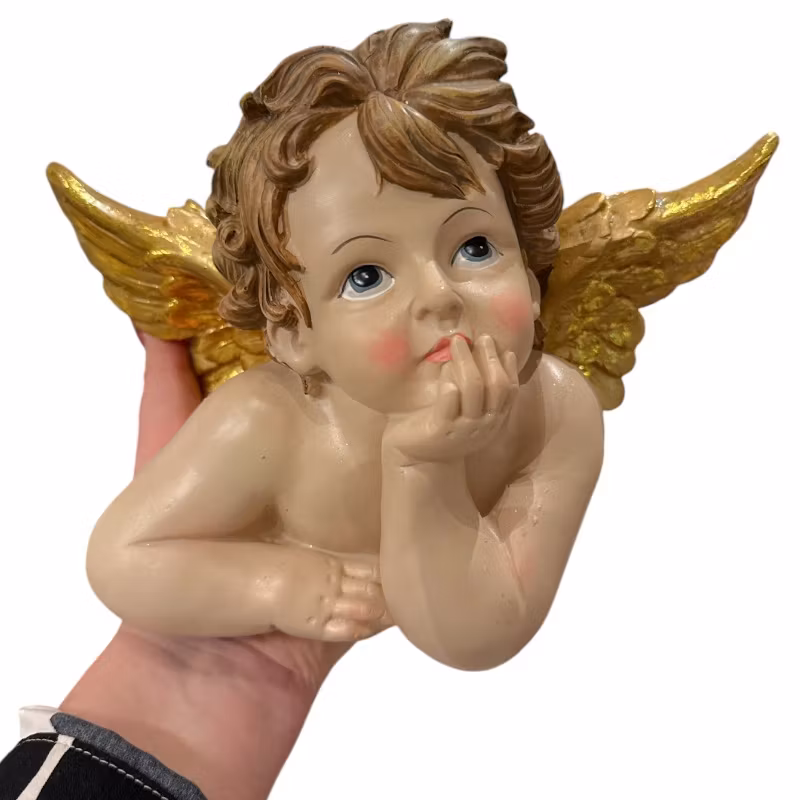 Låt denna ängel i gammal stil med skimrande guldvingar bli en del av din inredning.Den klassiska designen och de detaljerade vingarna ger en känsla av tidlös to