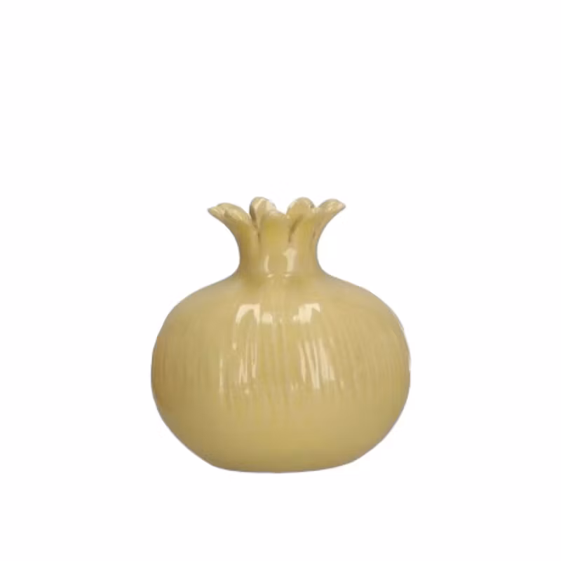 Denna granatäpple-formade vas finns i olika färger. Den glaserade ytan ger en vacker glans och de filtbeklädda fötterna säkerställer stabilitet.