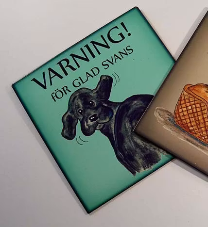 Plåtskylt med roliga texter om hunden. Välj motiv med hjälp av rullmenyn.