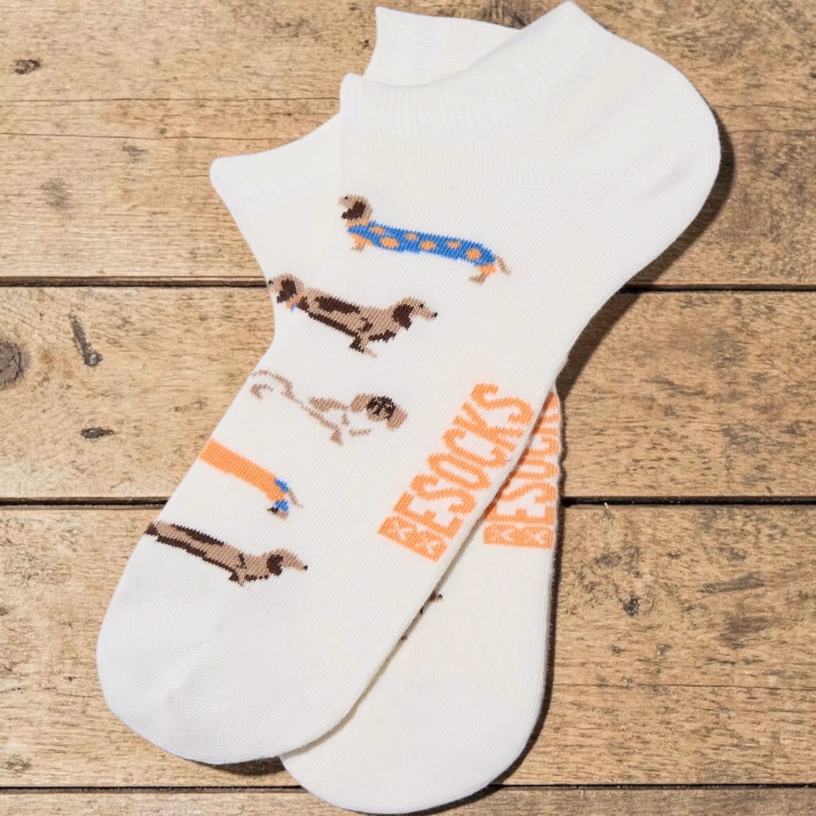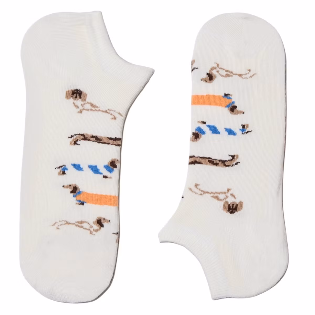 Dessa vita ankelstrumpor med charmiga taxmotiv är ett perfekt val för dig som vill ha både komfort och en rolig design som sticker ut. Strumporna är tillverkade av 100% ekologisk bomull, vilket ger en mjuk, luftig och behaglig känsla mot huden samtidigt som de sitter skönt i både sneakers och vardagsskor. Den korta modellen gör dem idealiska för varmare dagar eller för dig som föredrar en diskretare strumpa, medan den vita basen framhäver de färgstarka taxarna och skapar ett lekfullt och personligt uttryck. Perfekta att bära till vardags, på jobbet eller som en uppskattad present till någon som älskar hundar och mönstrade strumpor. Med sin bekväma passform i storlek 36–40 är de ett härligt tillskott till strumplådan.