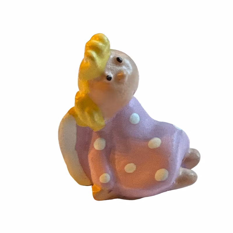Liten sittande ängel med rosa klänning med vita prickar på.MIN DESIGN för NääsgränsgårdenStl: 3 x 2 cmPris: 25:-