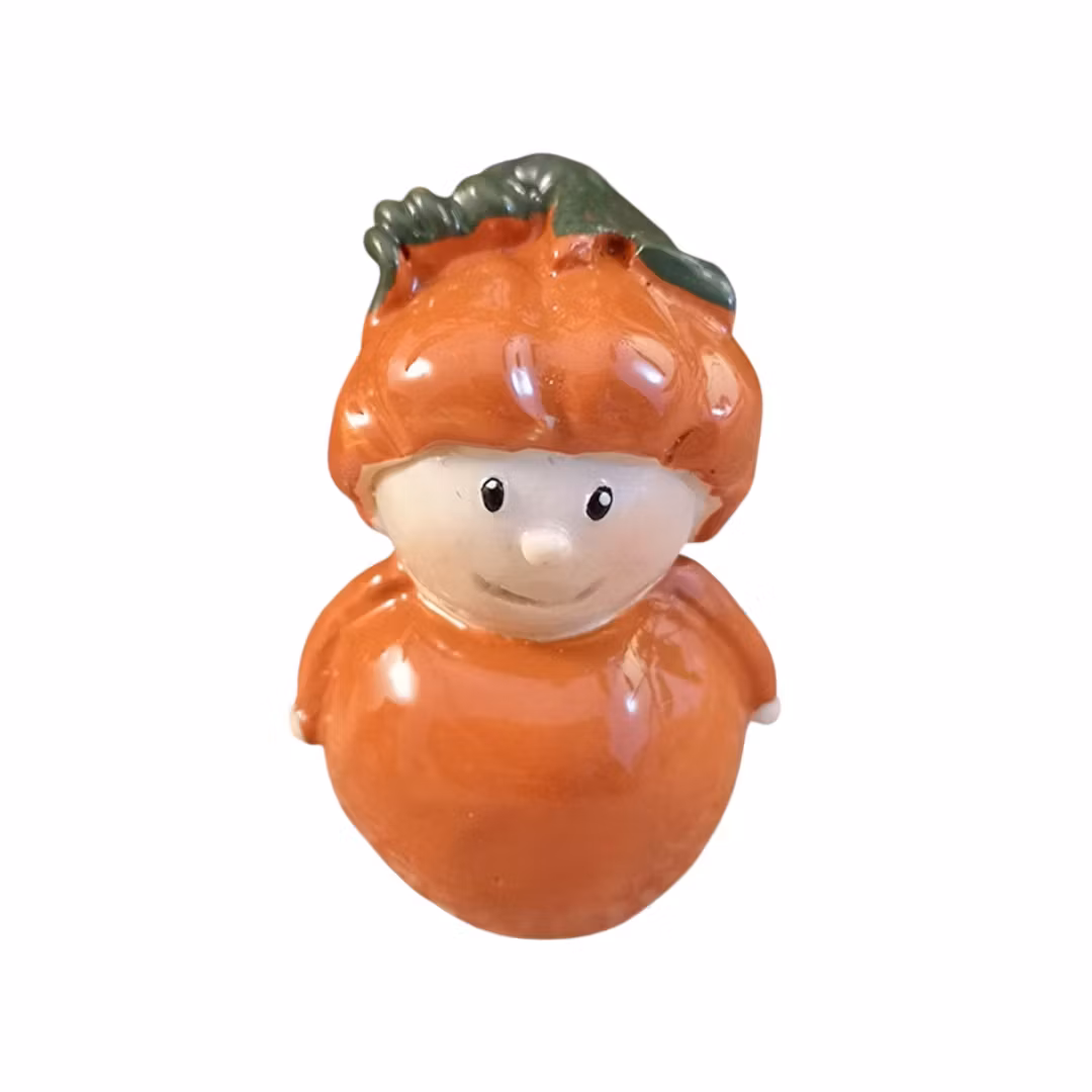 Små söta höstbarn med pumpa på huvudet och orange kropp – fina att dekorera med när hösten närmar sig. Detta är den mindre varianten som är ca 4 cm hög.