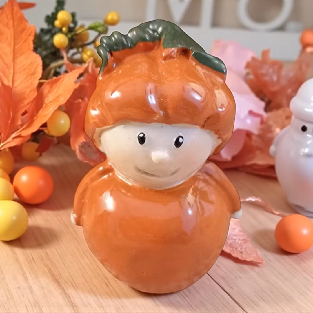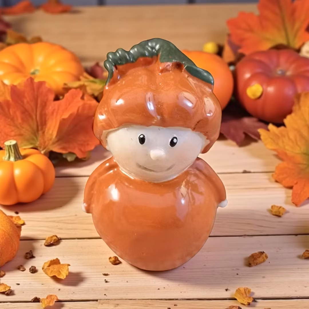 De här små höstbarnen är som små pumpaprickar av glädje! Med sina orange kroppar och pumpa på huvudet sprider de höstkänsla var de än placeras – i fönstret, på bordet eller som en del av en större dekoration. Denna mindre variant är ca 4 cm hög och passar perfekt för dig som vill ha något nätt men uttrycksfullt.