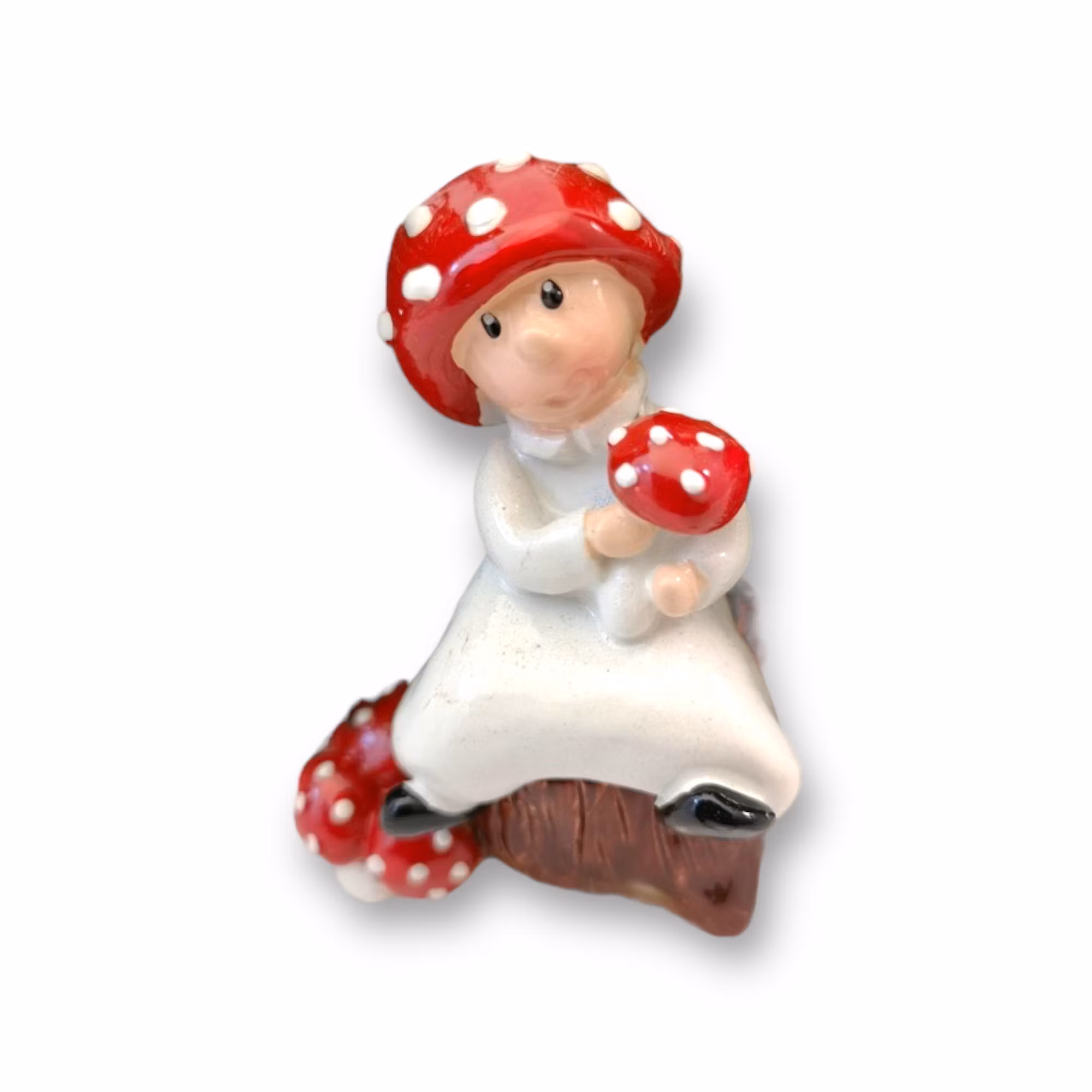 Små söta svampbarn som sitter på en stubbe. EGEN DESIGNStl ca: 6 x 6 cm Pris: 79:-