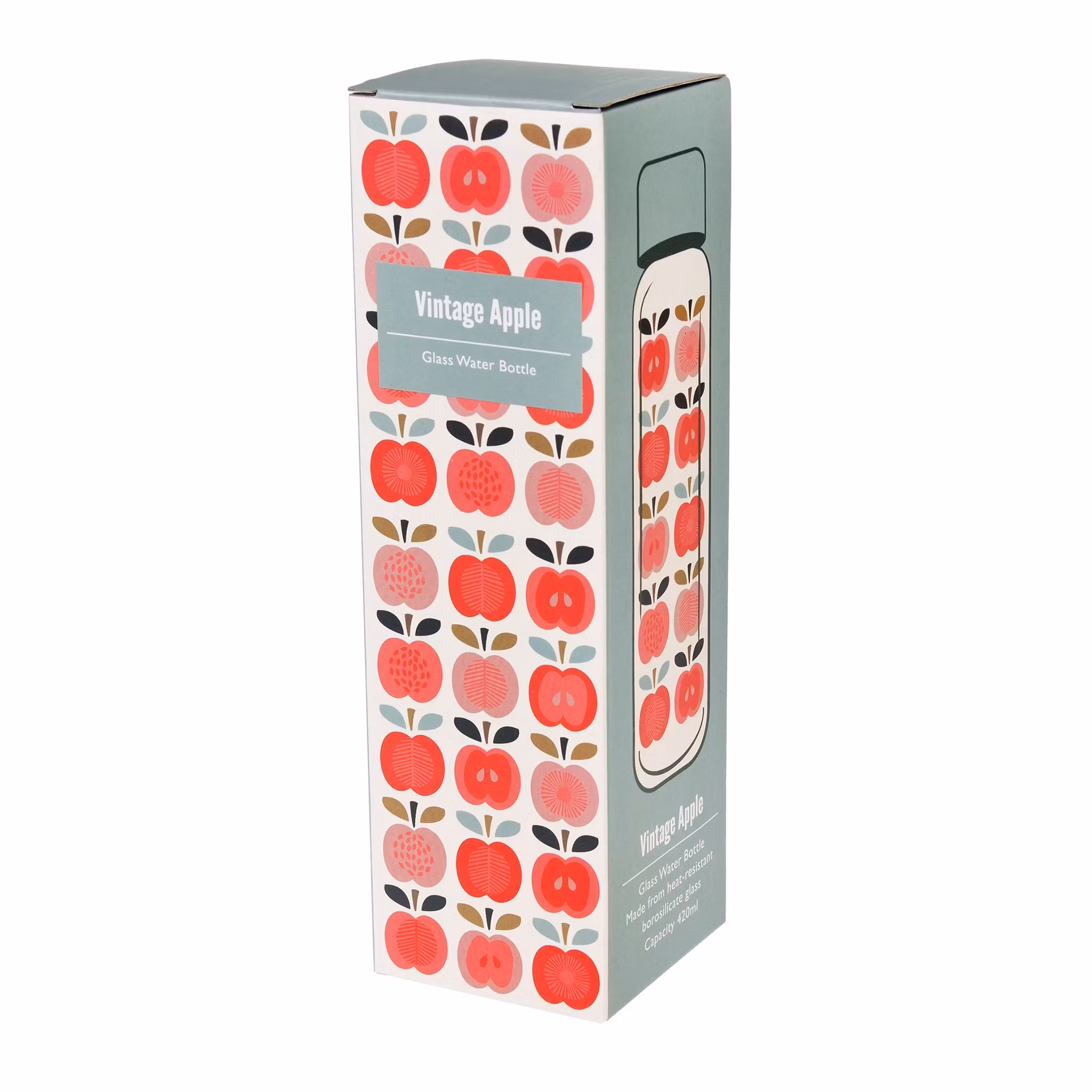 Stilren flaska i glas dekorerad med äpple med kork i bambuträ.