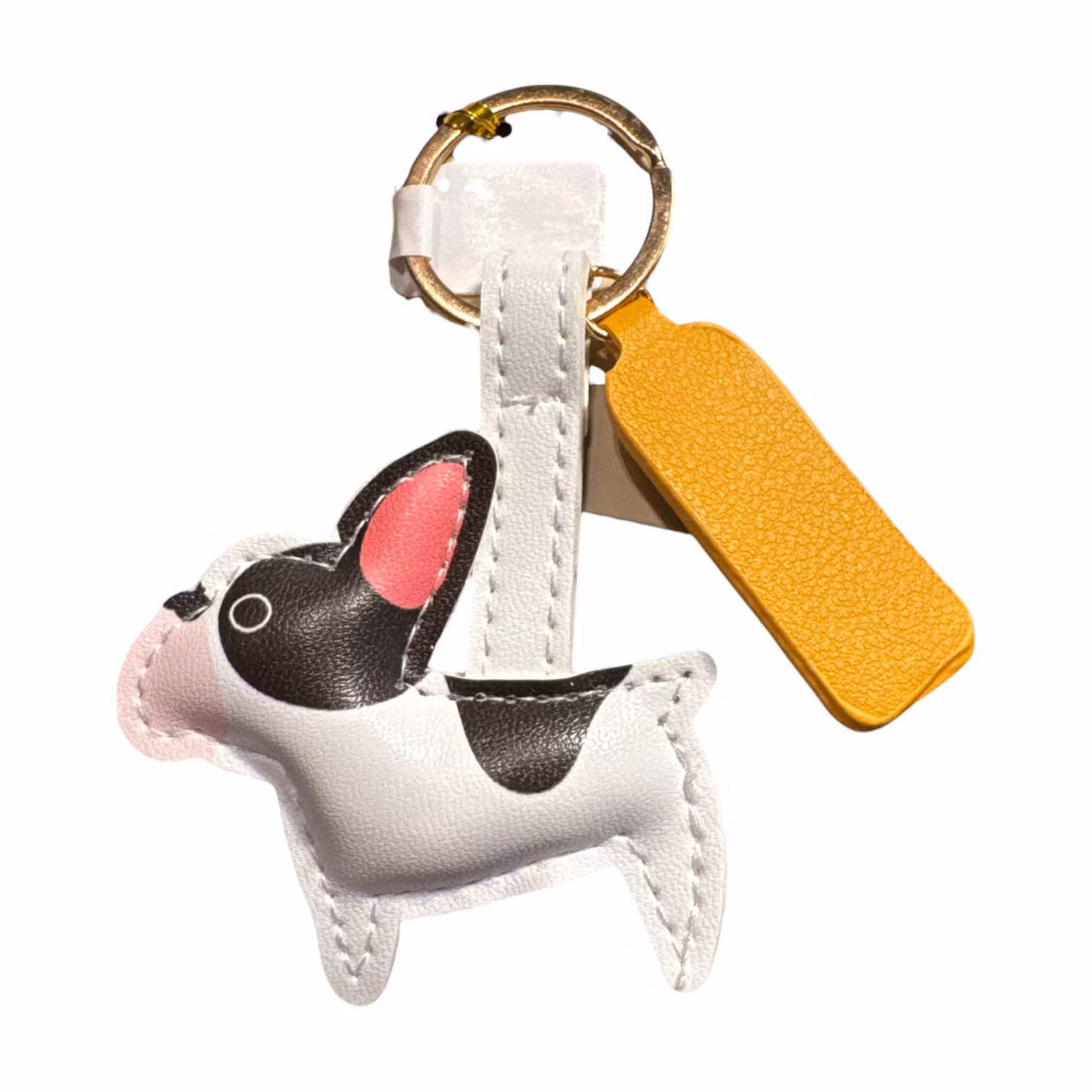 Denna nyckelring med fransk bulldog i PU‑läder är en charmig accessoar som kombinerar stil och personlighet. Figuren är cirka 6 cm lång och tillverkad i PU‑läder med ett fint motiv i vitt och svart. Den är enkel att fästa på nycklar, väskor eller ryggsäckar och blir en detalj som visar din kärlek till hundar. Med sin klassiska design är den både praktisk och dekorativ – perfekt som present till hundälskare eller som en unik vardagsaccessoar.