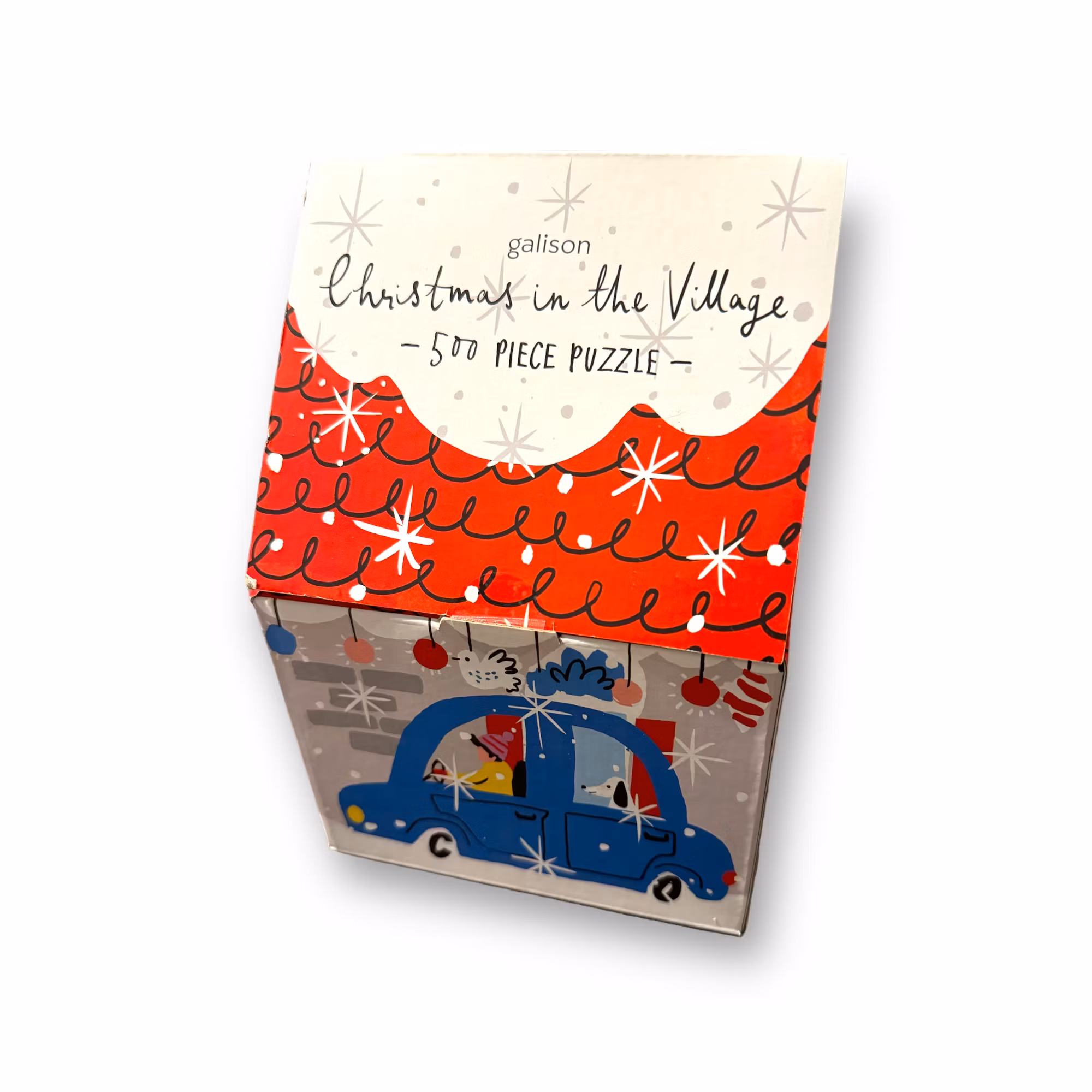 Kul pussel som kommer i en kartong i form av ett julhus. Innehåller 500 bitar.