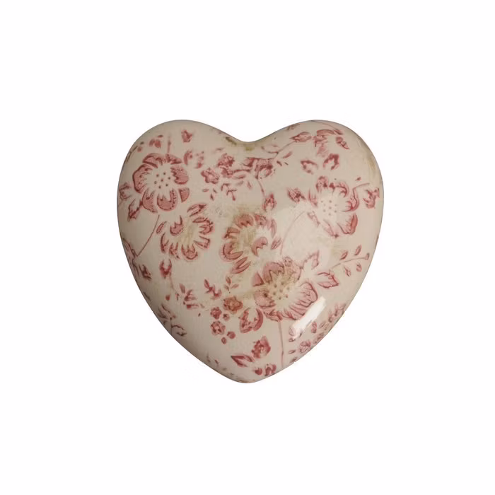 Sött hjärta i porslin med rosa blommor, en fin liten inredningsdetalj.Passar även fint att dekorera utomhus med i blomsterkrukor och dyligt.Stl: 8 x 8 x 2,5 cmP