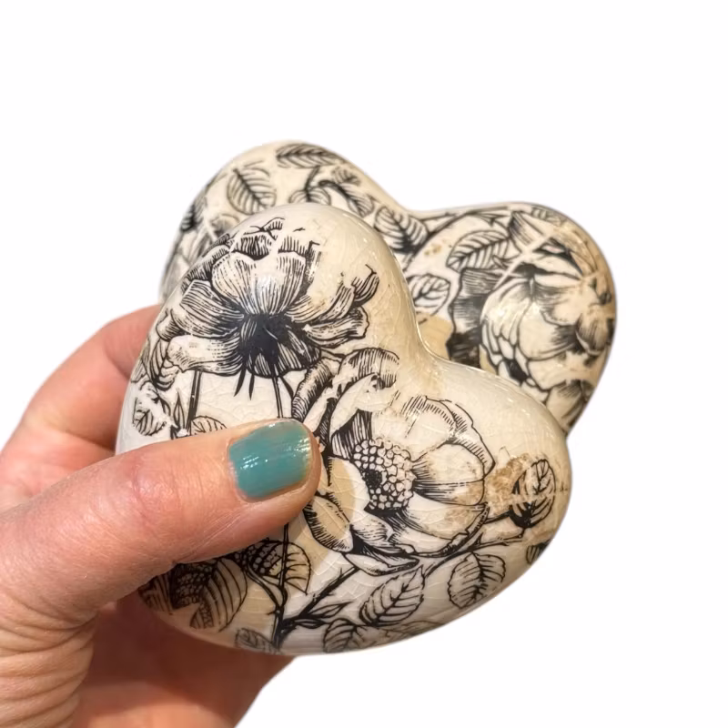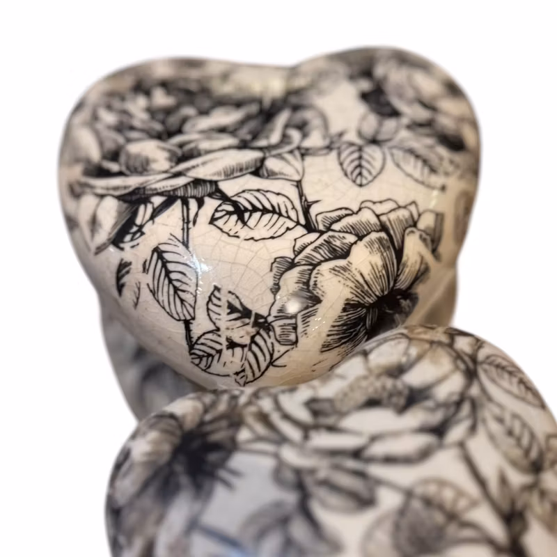 Sött hjärta i terracotta med svarta rosor, en fin liten inredningsdetalj.