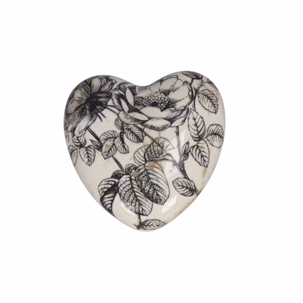 Sött hjärta i terracotta med svarta rosor, en fin liten inredningsdetalj.Passar även fint att dekorera utomhus med i blomsterkrukor och dyligt.Stl: 8 x 8 x 2,5