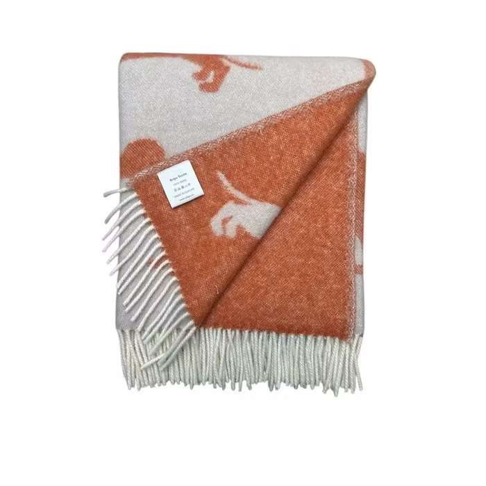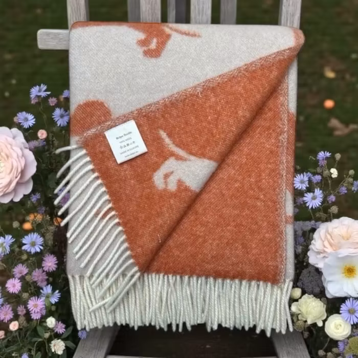 Ge ditt hem en varm och personlig touch med denna exklusiva ullpläd, tillverkad i 100% Virgin New Zealand wool – känd för sin mjukhet, hållbarhet och naturliga värme. Pläden är vävd på Irland med ett charmigt spegelvänt taxmönster som kombinerar mörkbruna och beige toner i ett stilrent och lekfullt uttryck.